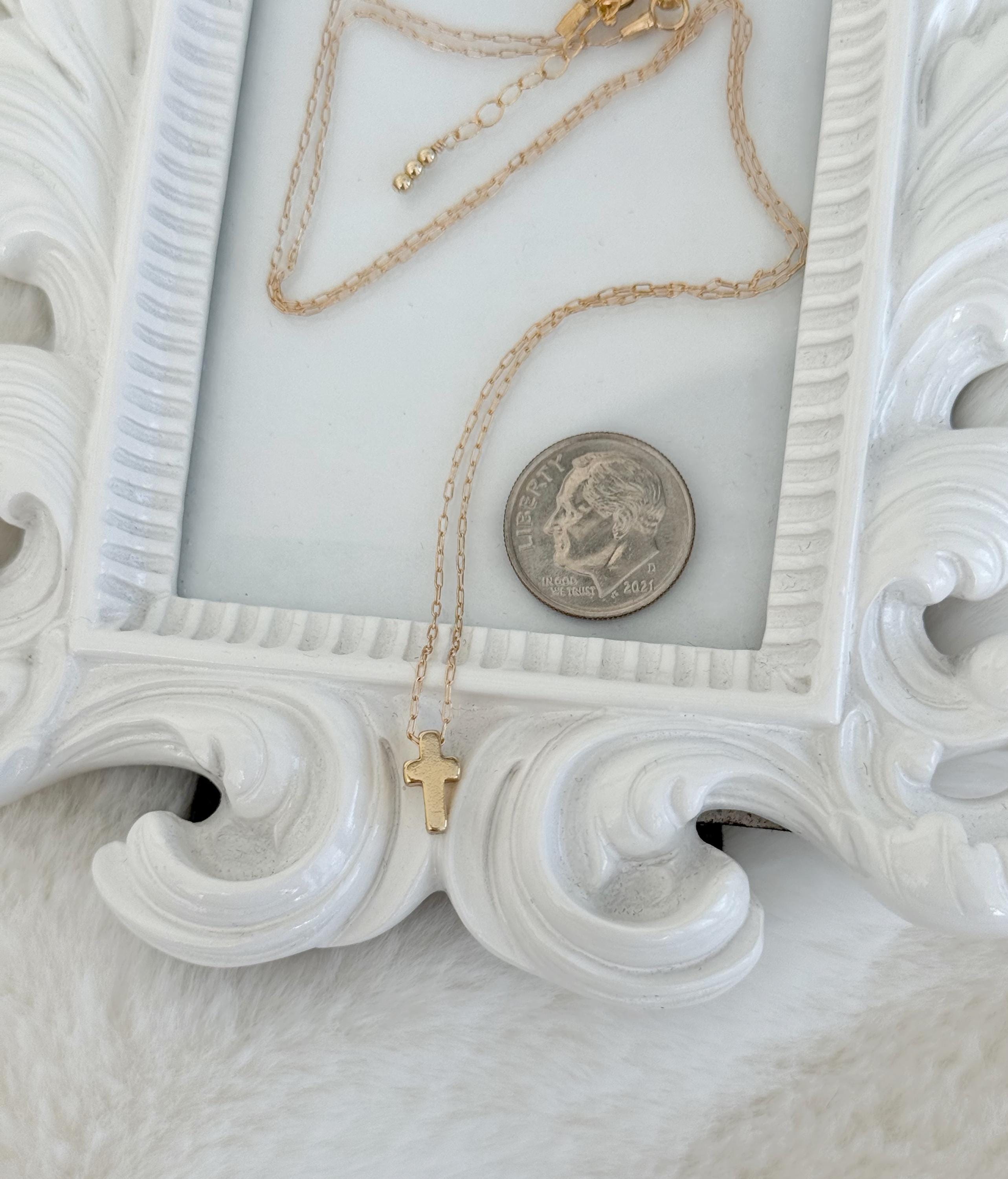 ♥ Adorable tiny gold cross that slides on a petite 14k gold filled elongated paperclip chain. You can choose to add a 1" extension in the drop down menu.