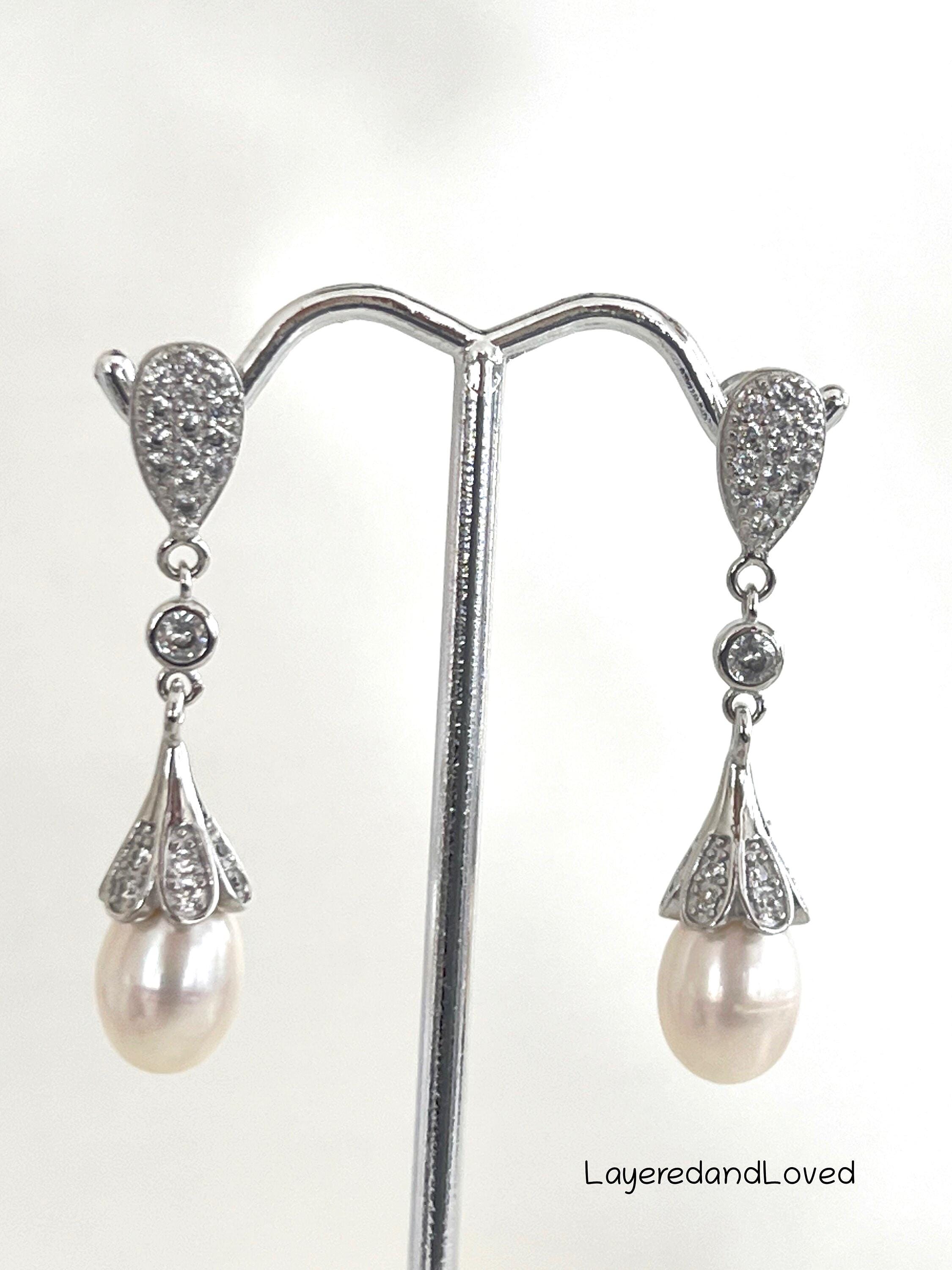 ♥ Similar to Kate Middleton's earrings. She wore hers in her recent 40th birthday portrait on display. Freshwater pearls in silver zircon posts with sterling silver ear pins. The silicone backings also have sterling silver clutches inside. The pearls have very minimal imperfections.