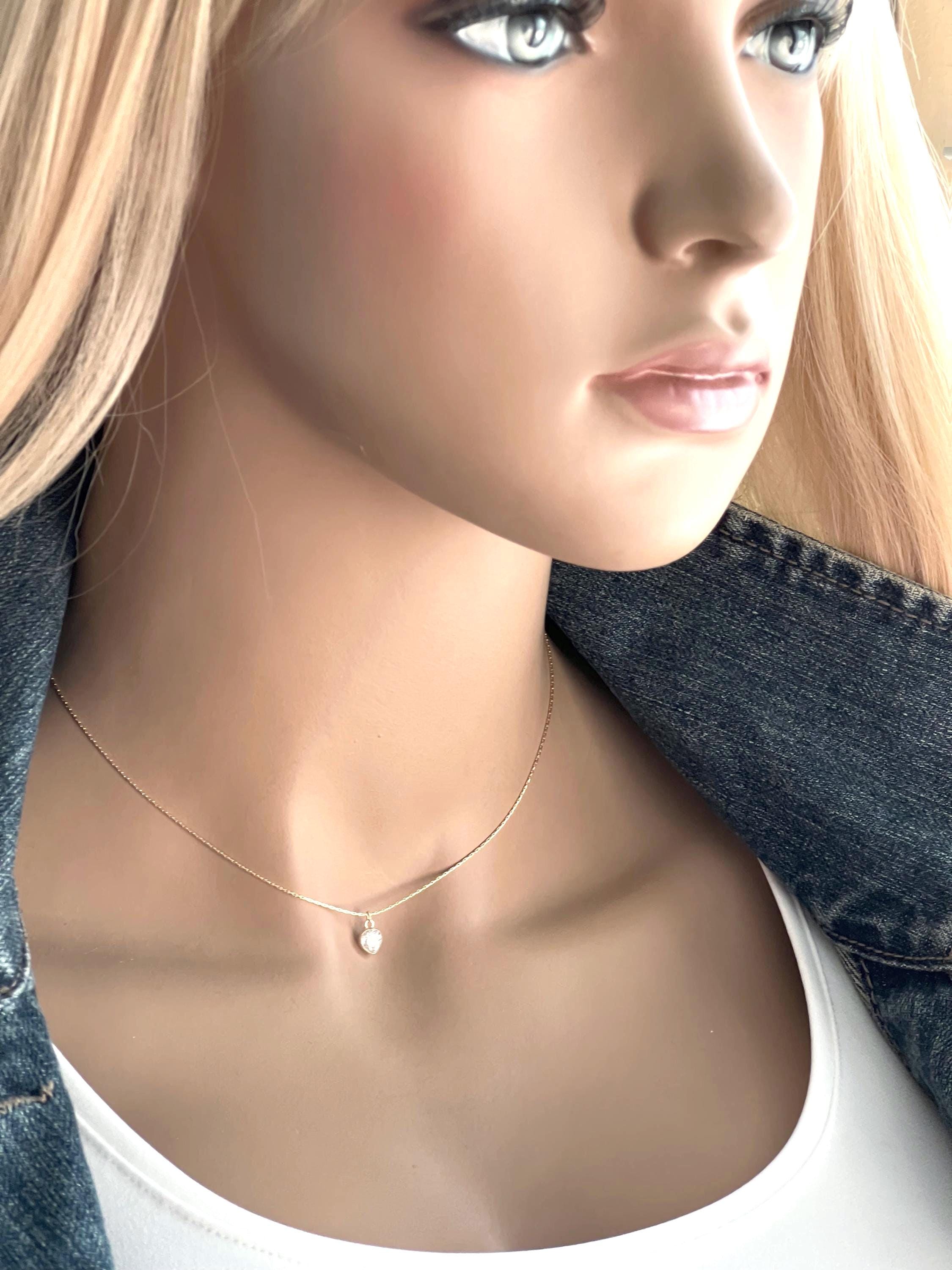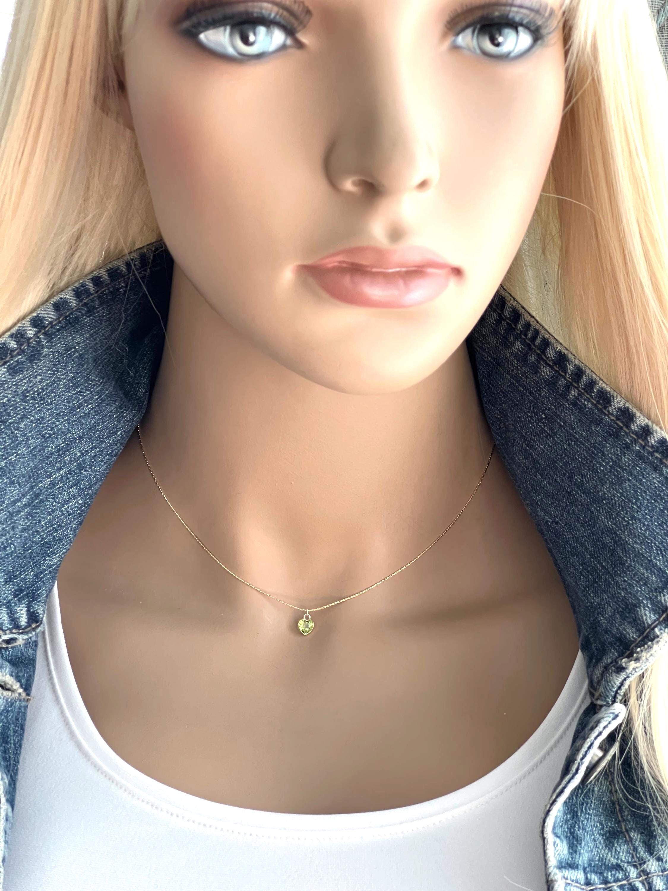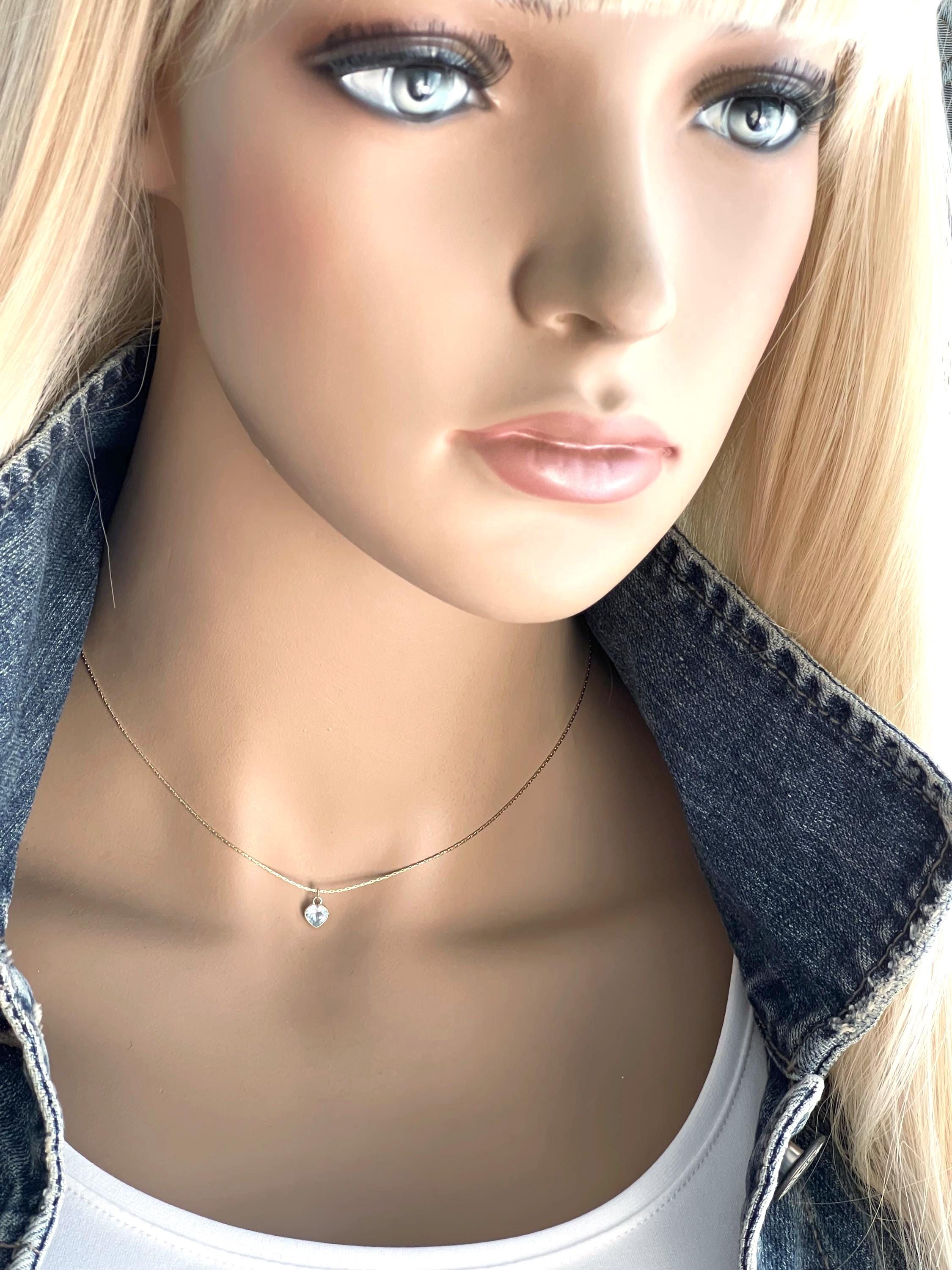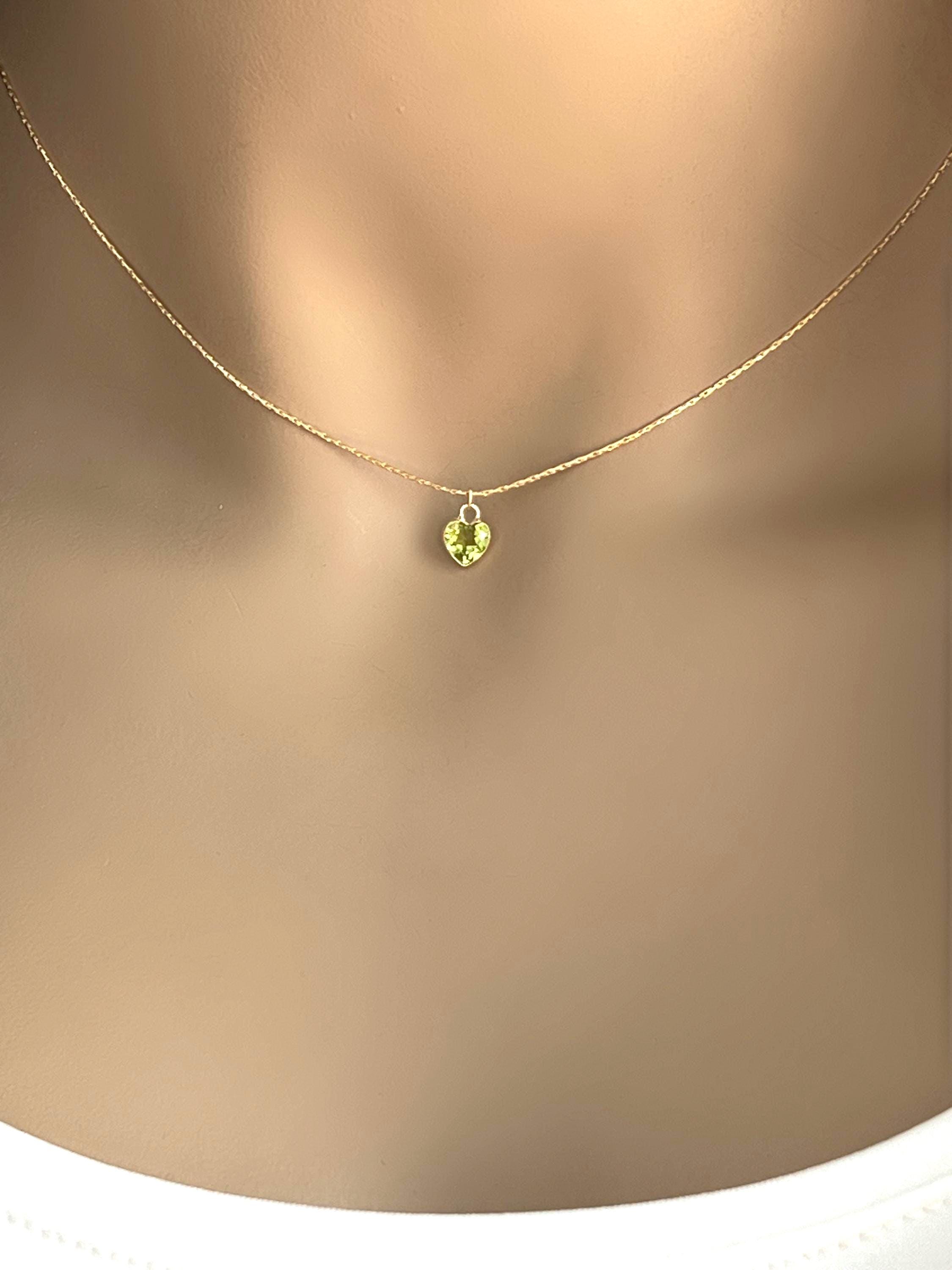 ~ Adorable dainty gemstone heart bezels set in solid 14k gold. The heart charm is suspended on a 14k gold filled snake chain with all 14k gold filled connections. These gemstone hearts have a smooth face with a faceted cut point back for added sparkle. Because of the pointed back I think the best placement is at the hollow of your throat, like in the photos on my mannequin. For that reason I have it available in 13", 14" and 16" length. If you want it longer just send me a message for the price difference.