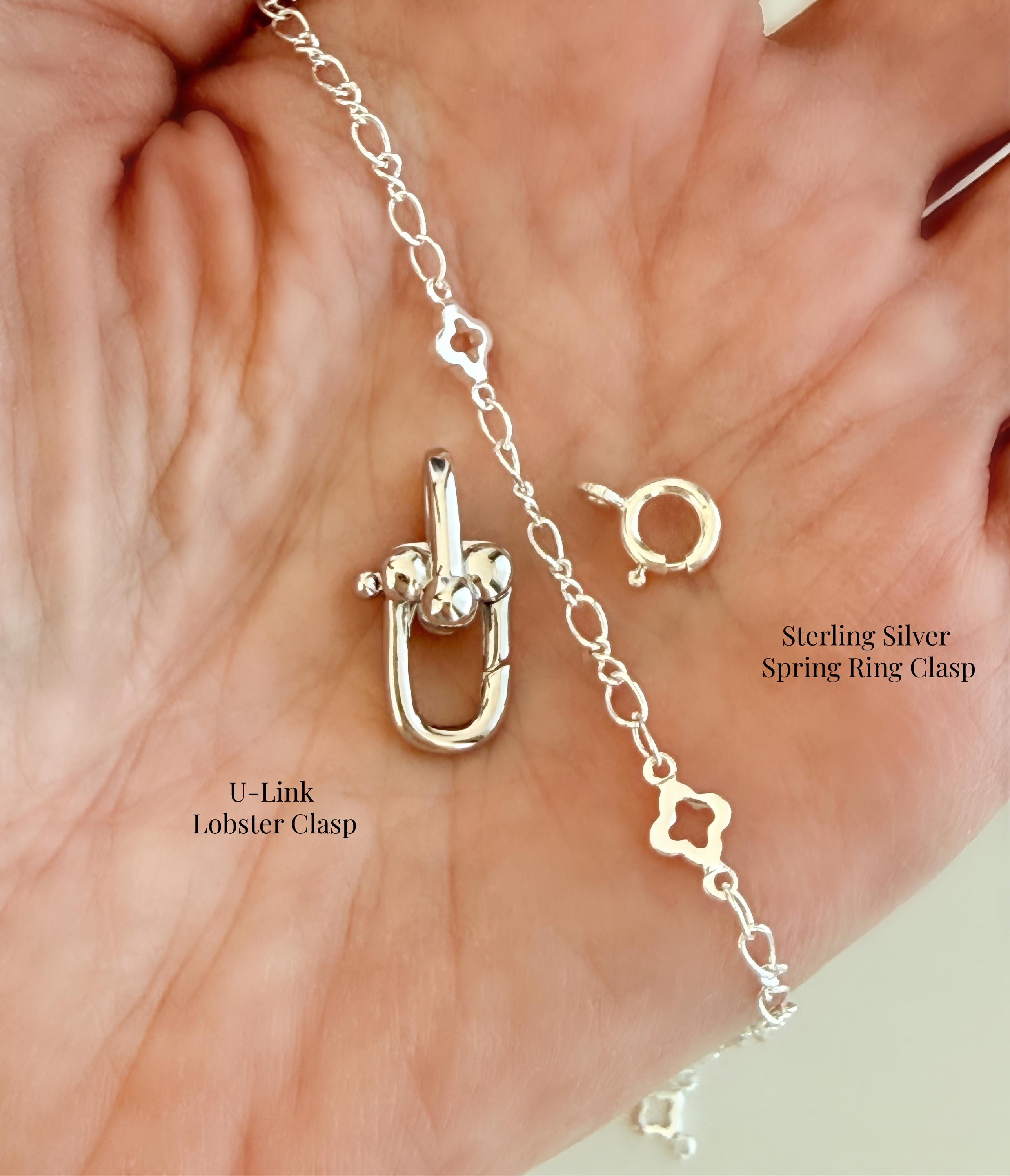 · Layer your clover chain with a simple pendant necklace or gemstone piece for a touch of sparkle. The adjustable lengths make it easy to style for any occasion. If you get the U link lobster clasp, you can add your favorite charm for more of a statement look.