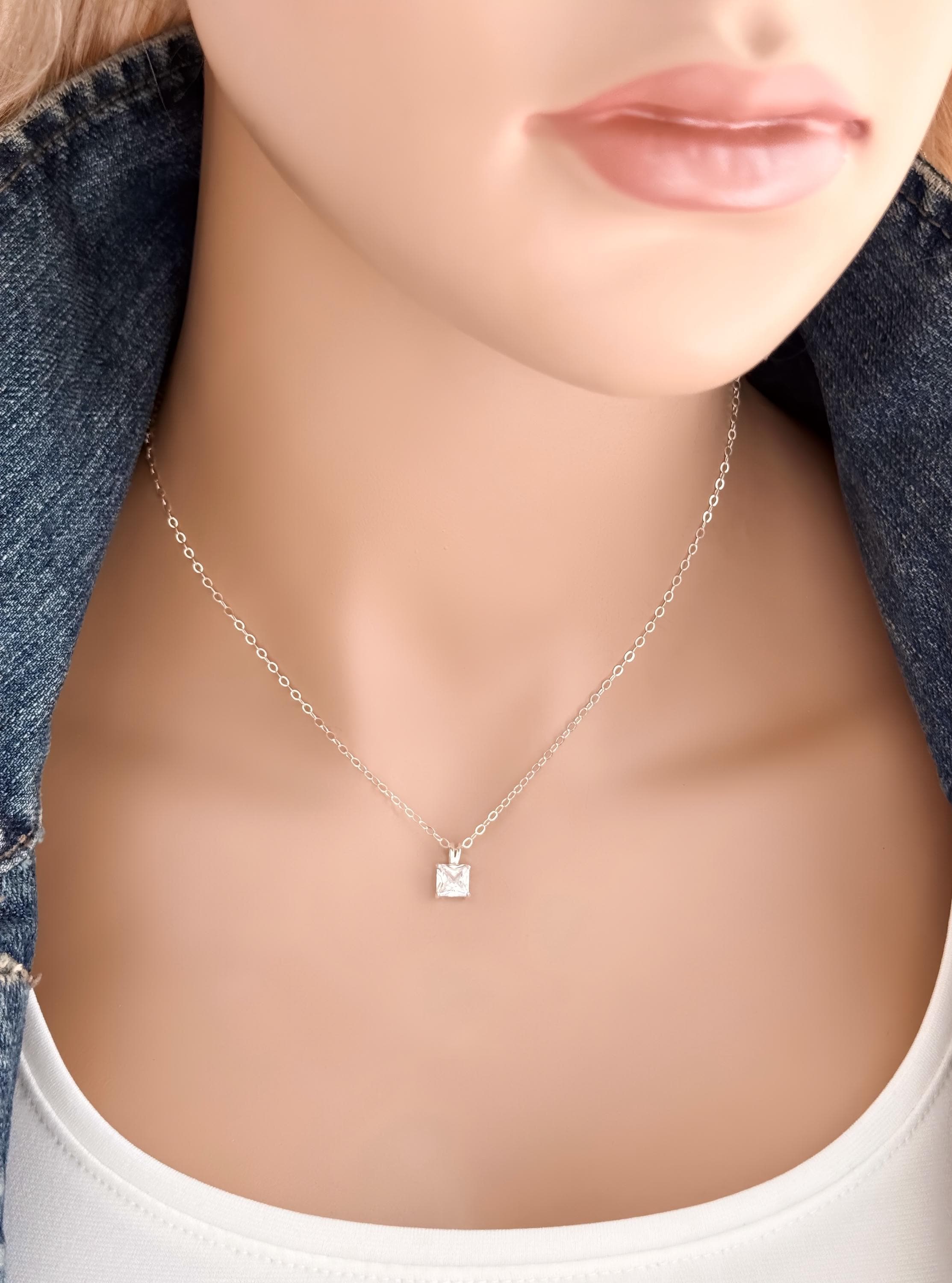 ~ Sterling Silver Princess Cut Zircon Charms, 6mm or 1.25 Carats