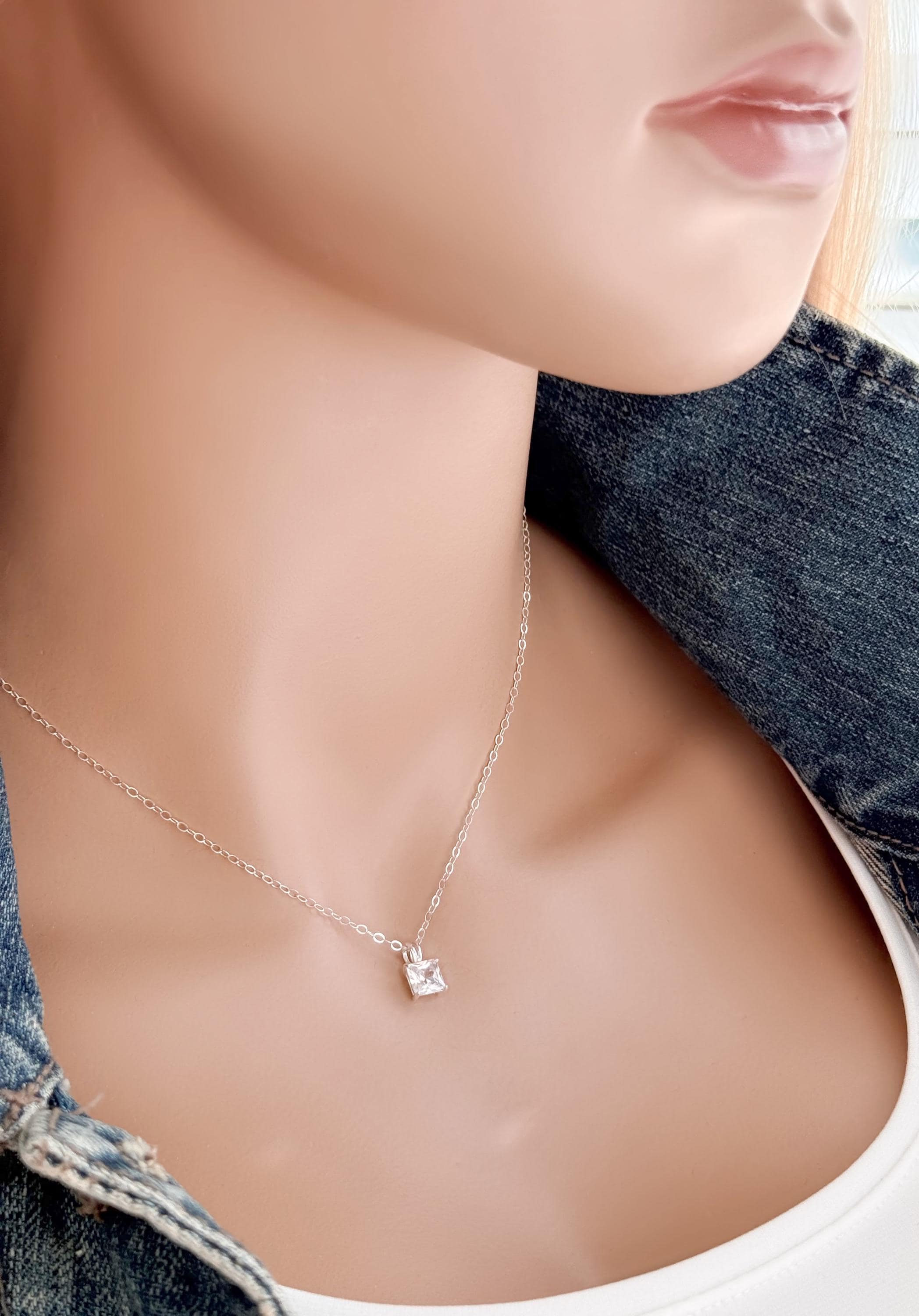 Mommy & Me Sterling Silver Princess Cut Zircon Necklace Set