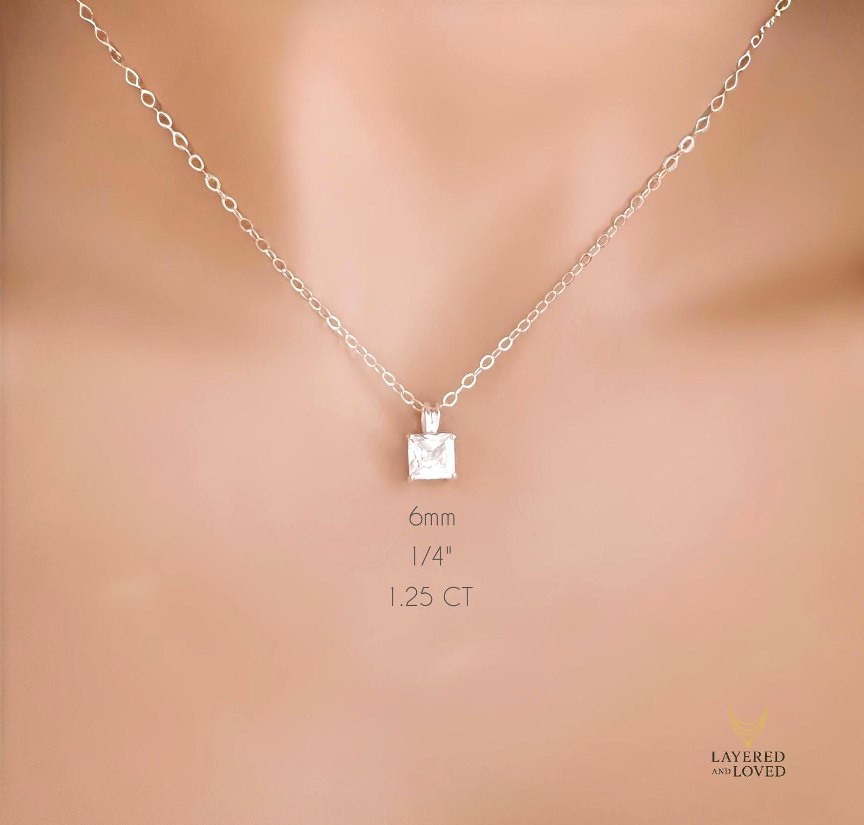 ♥ Celebrate the unbreakable bond between mother and daughter with this timeless Mommy & Me necklace set. Each matching necklace features a brilliant 6mm princess cut zircon diamond-equivalent sparkle, suspended from classic cable chain.