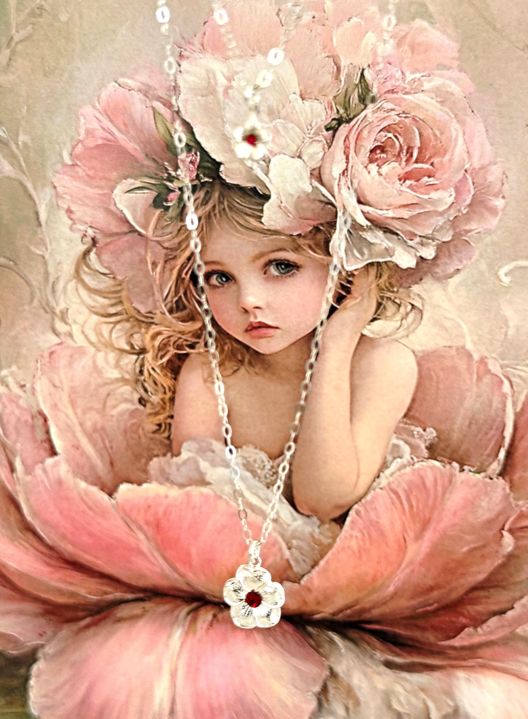 · Birthstone center in each flower