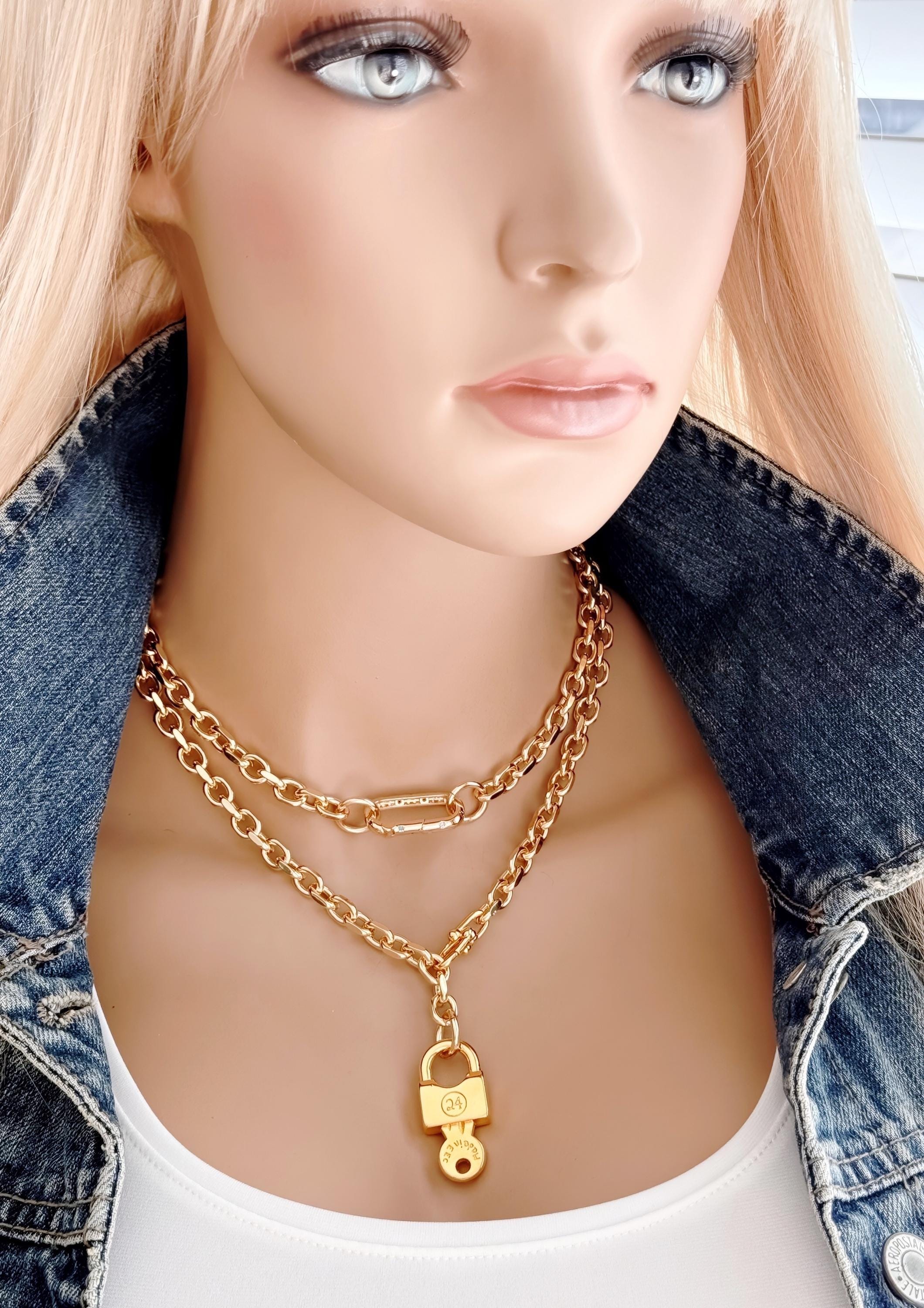 ♥ - The unique design allows the U-link clasp to attach anywhere along the chain, so you can wear it as a short statement necklace, a long lariat, or adjust the drop length to suit your outfit. The gold plated lock charm adds a touch of symbolism, representing strength, protection, and holding close what matters most.