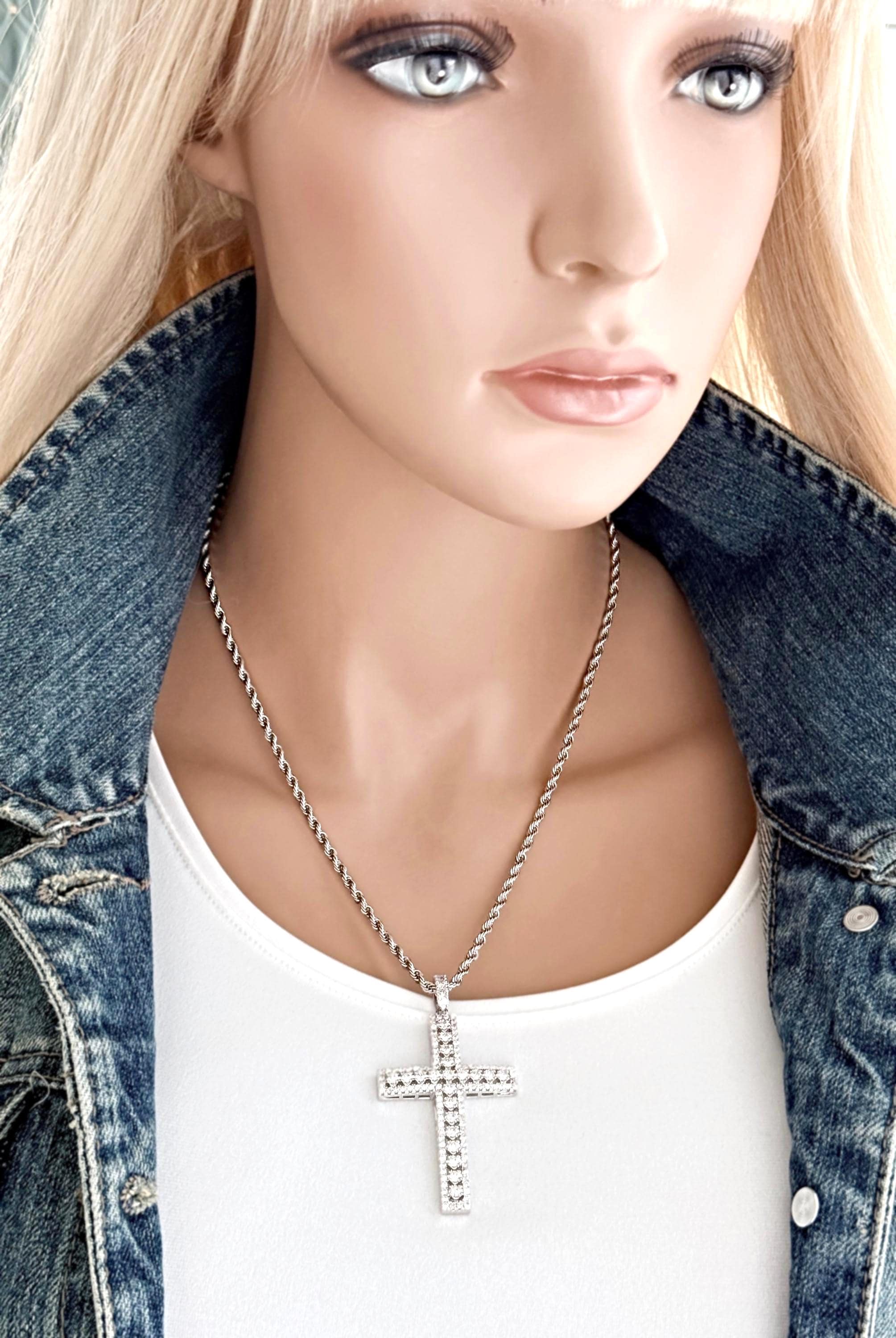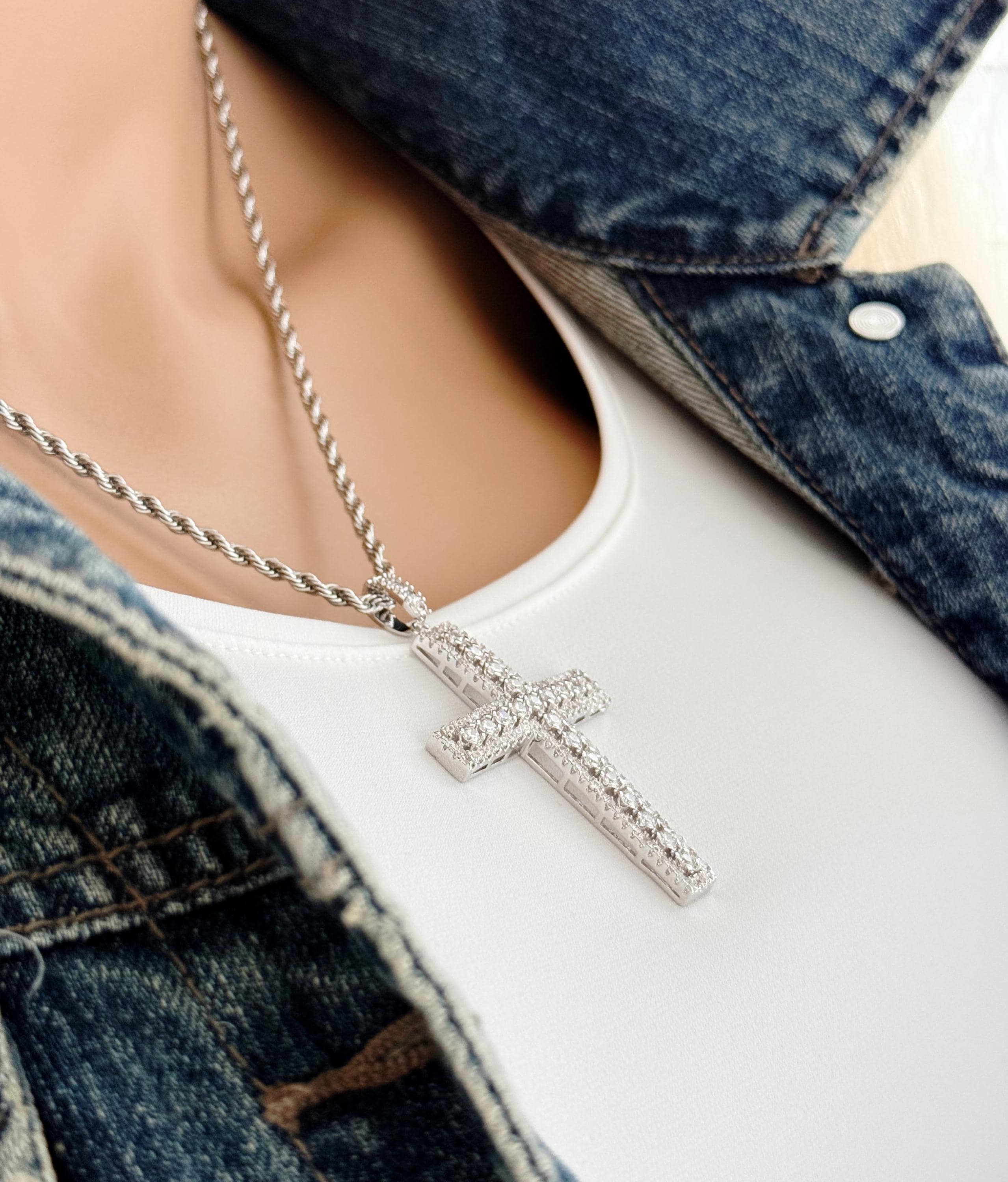 ♥ - This eye catching cross features a fully iced zircon finish, set in a silver plated copper pendant that captures the look of luxury sparkle without the fine jewelry price. Designed to stand out, this piece brings a strong, radiant presence whether worn alone or layered.