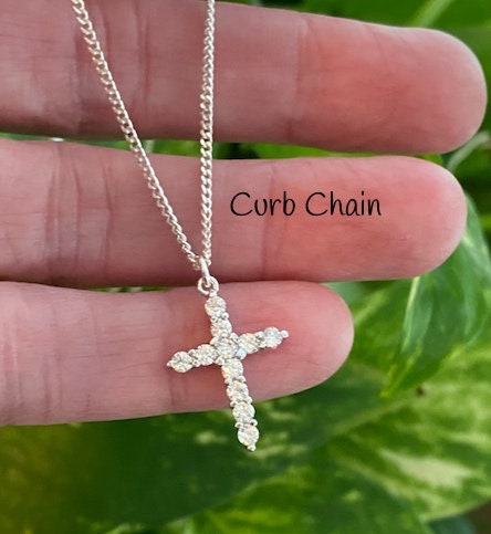 ♥ A sparkling cross necklace all in sterling silver. The curb chain looks more like Kate Middleton's chain in the first picture and is finished with sterling silver beads. See the two different chains in pics 5 & 6. Celebrities from Selena, Denise & Kate can be seen wearing similar diamond cross necklaces. You can also choose to add an extension to give you the perfect fit in the drop down menu.