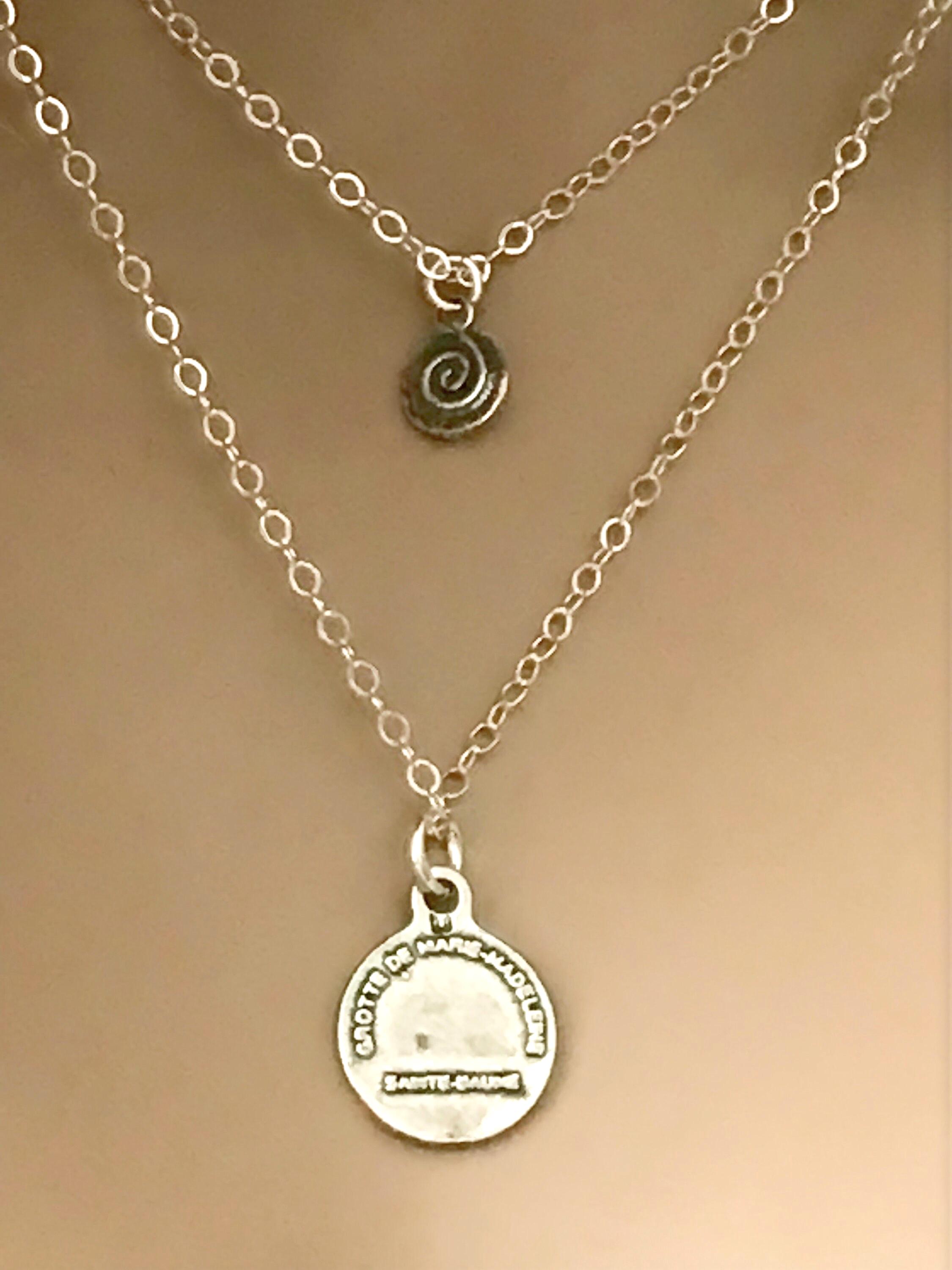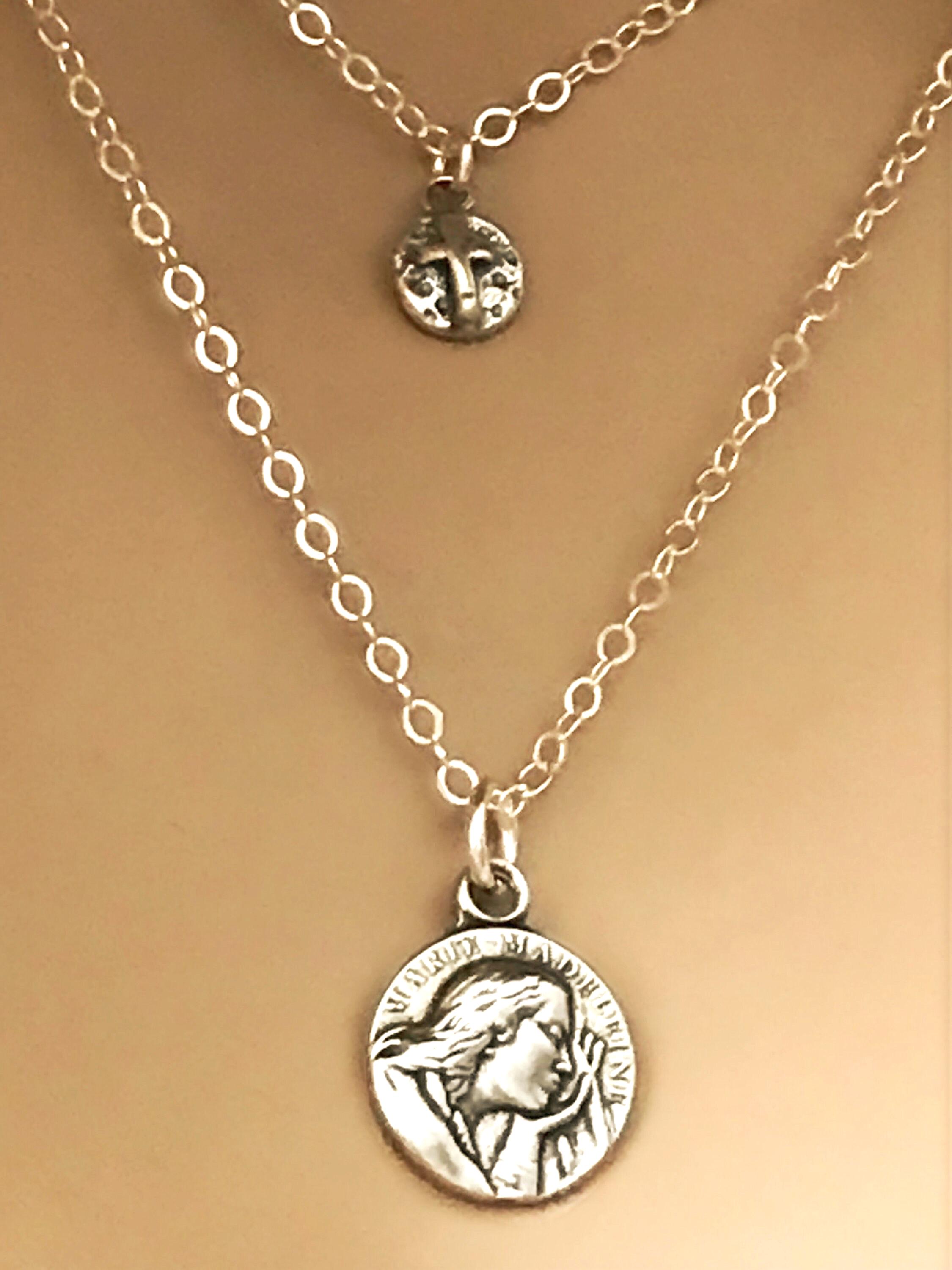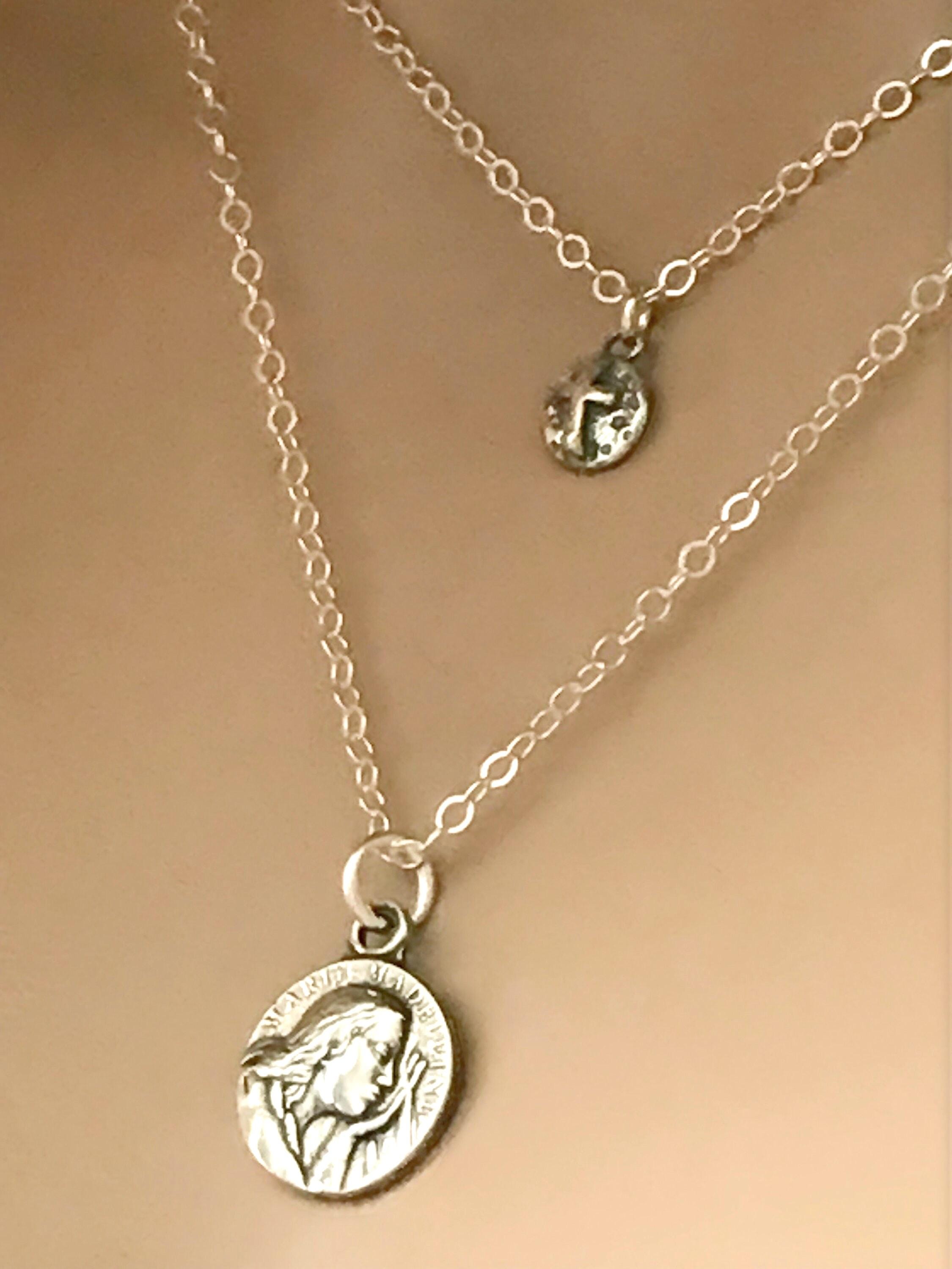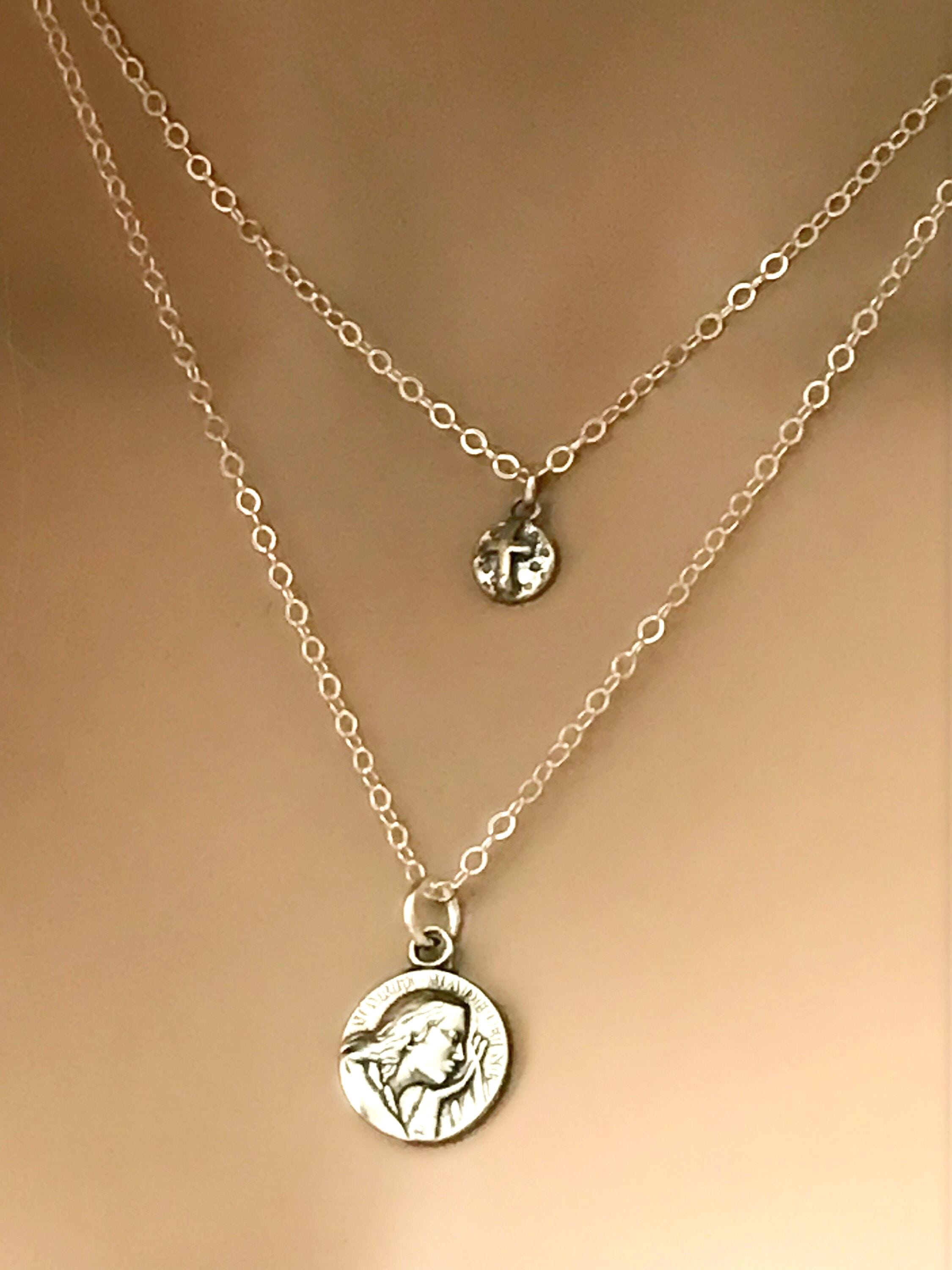 Sterling Silver Saint Mary & Cross Necklace Set.