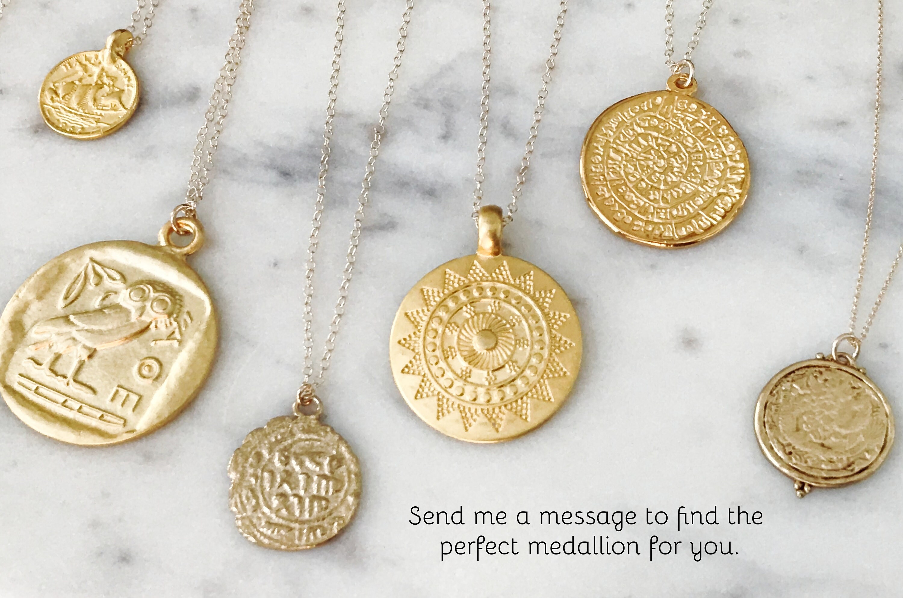 ❤️ These coin medallion pendants are wonderful to layer and have a great weighty feel to them. Each backside is a little different and would look great on either side.