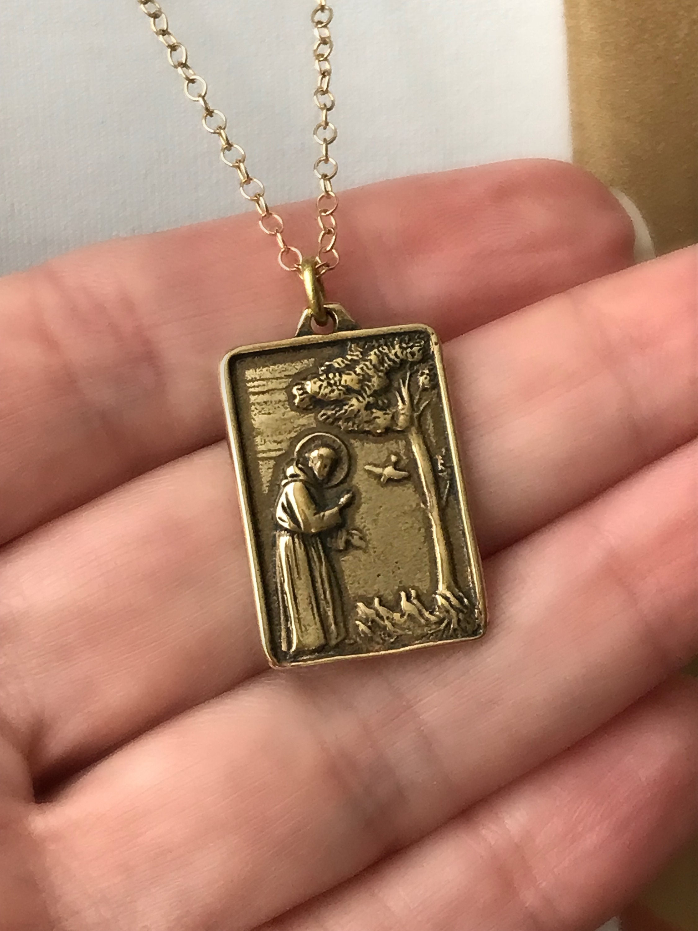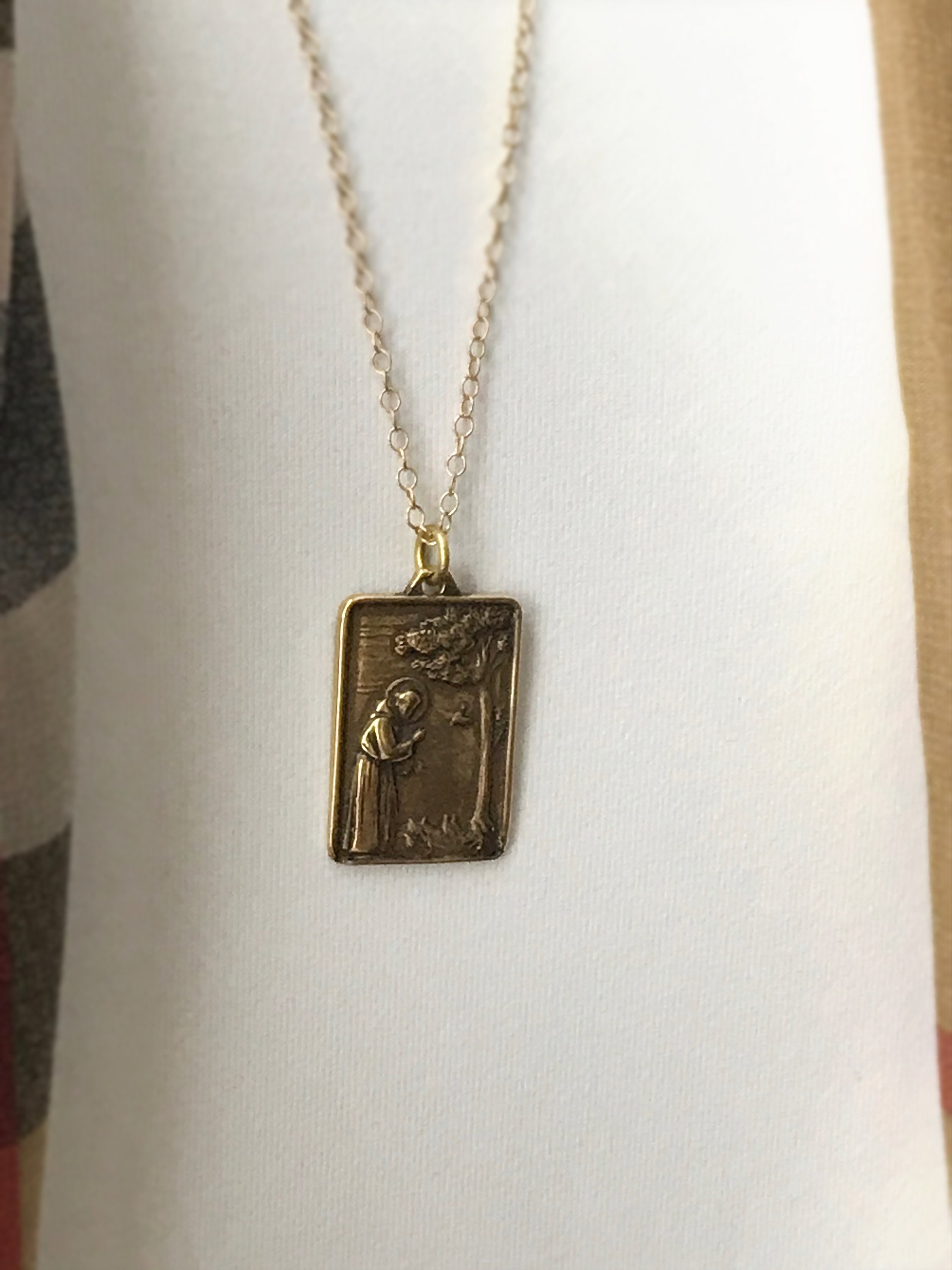 Saint Francis Medallion Long 14k Gold Filled Necklace